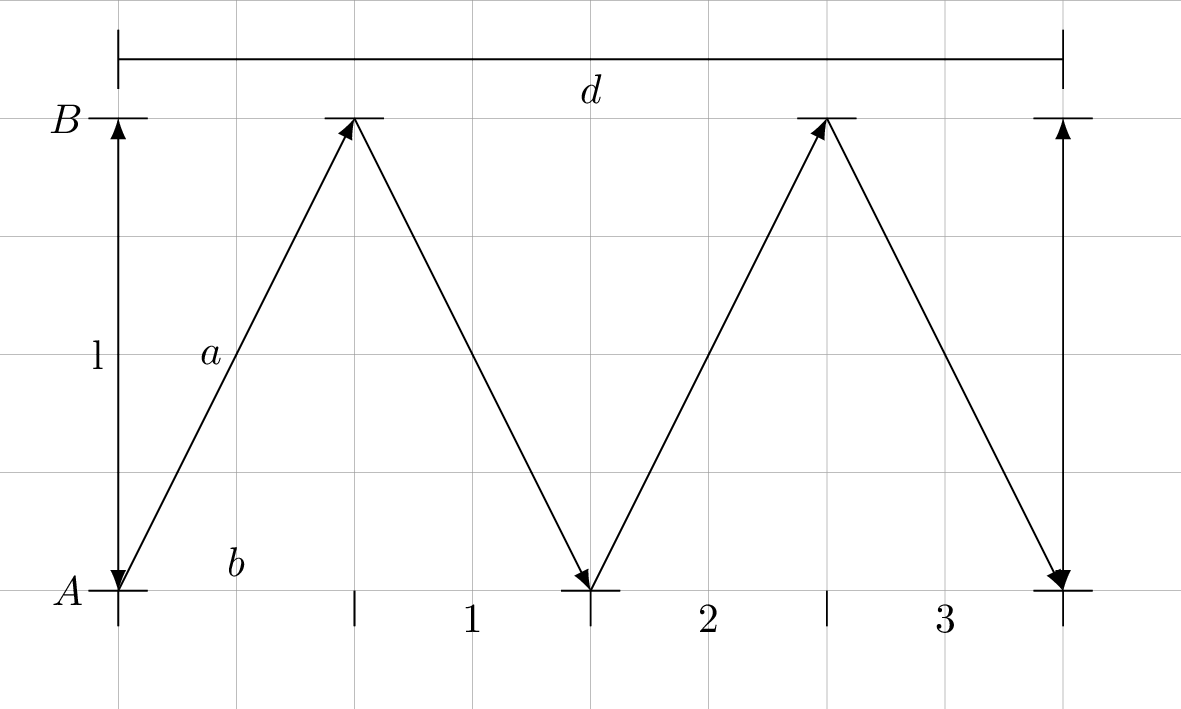 Similarly the count for the stationary clock is $N_0 = cT_d/2l = cd/2lv$. The lag factor $L$ as the factor of how the moving clock ticks slower is therefore $$L=N_d/N_0 = v_l/c = \sqrt{c^2 - v^2}/c = \sqrt{1 - (v/c)^2}\,.$$ Should we not have found the Lorentz factor, not its inverse? No, it is just right, since the Lorentz factor relates the time between two ticks of the moving clock and the stationary. Since we count the ticks, we get its inverse.